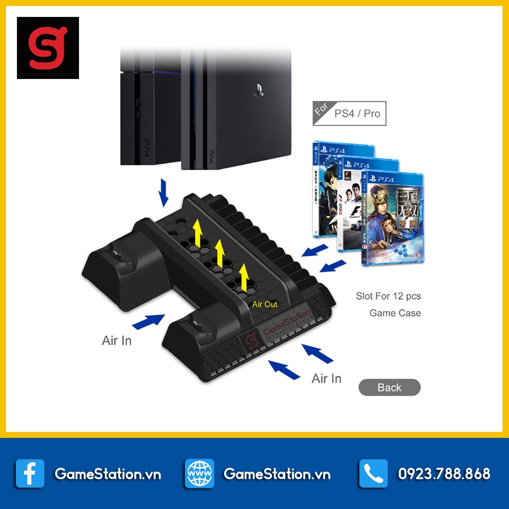 Đế Đứng Kèm Quạt Tản Nhiệt Và Khay Đựng Đĩa Game Cho Máy PS4, PS4 Pro, PS4 Slim