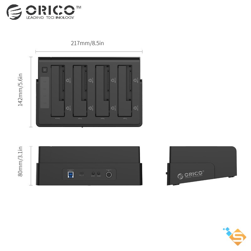 Đế ổ cứng (Docking) 4 khe cắm: 3.5" và 2.5" SATA 3 USB 3.0- Dùng cho cả SSD và HDD. Hỗ trợ ổ cứng 2.5" 2TB, 3.5" 8TB.