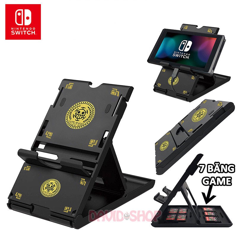 Đế dựng in biểu tượng băng hải tặc Heart trong manga/anime One Piece, đồng thời có thể chứa được 7 băng game Nintendo Switch bên trong.---------------------------