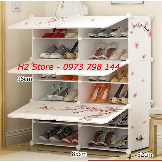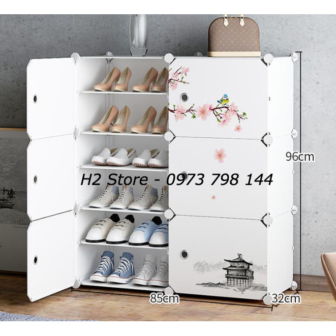 Giới thiệu [ĐỂ ĐƯỢC 24 ĐÔI] - TỦ CHIA Ô 12 NGĂN ĐỂ GIÀY DÉP ĐA NĂNG CỬA TRẮNG HÌNH HOA ANH ĐÀO SIÊU ĐẸP
