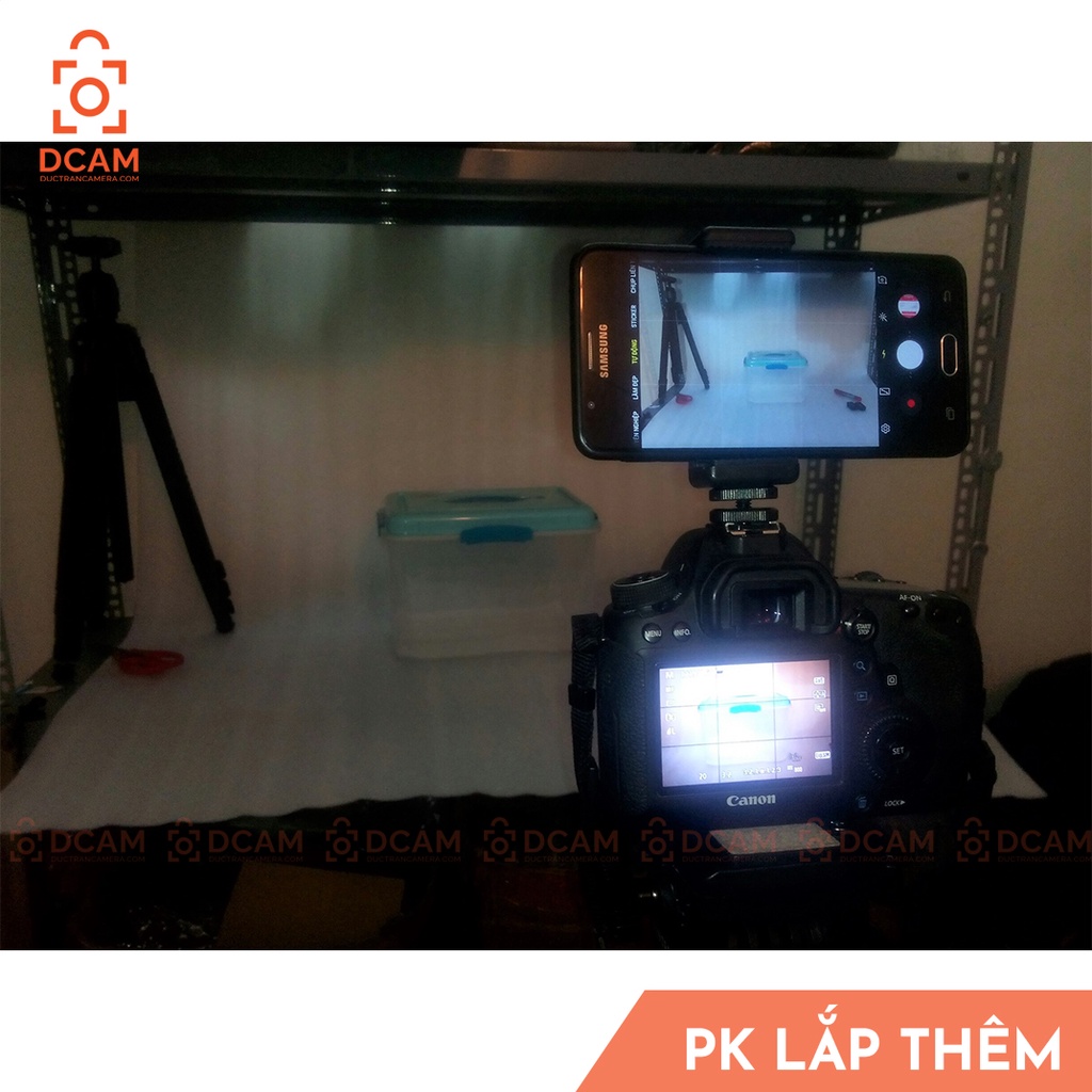 Dùng đế này để gắn điện thoại với máy ảnh qua chân flashCực tiện khi bạn vừa muốn chụp hình vừa muốn live stream và quay video bằng điện thoại nhé