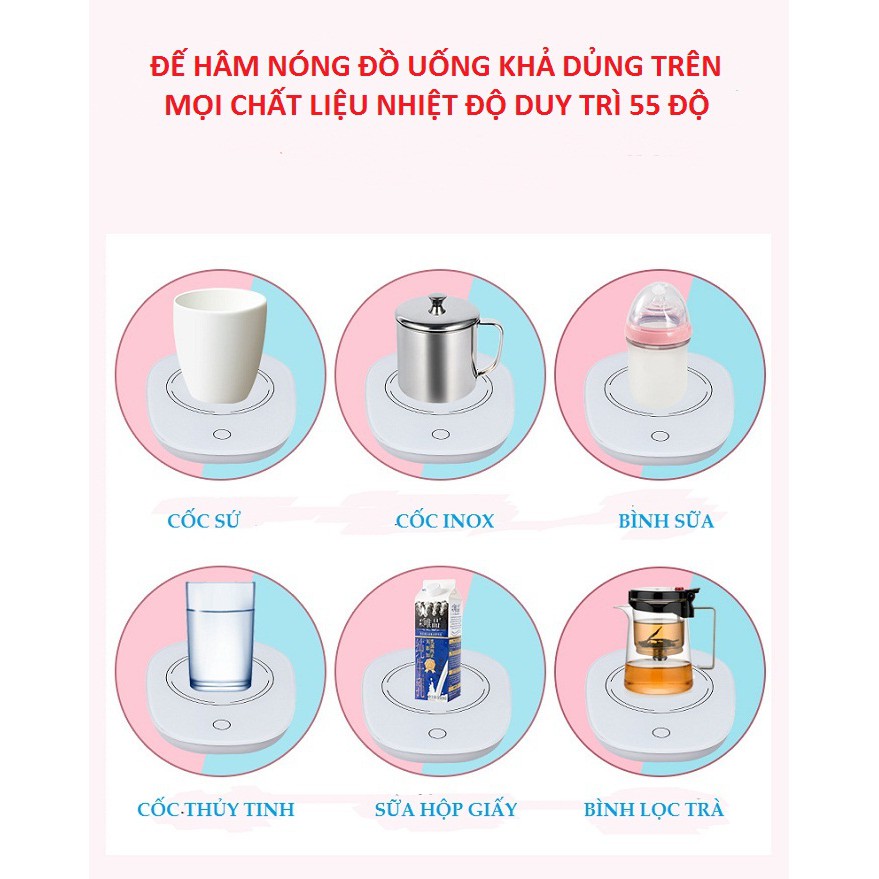 Đế hâm nóng giữ nhiệt đồ uống trà, cà phê, sữa ( kèm cốc thìa )
