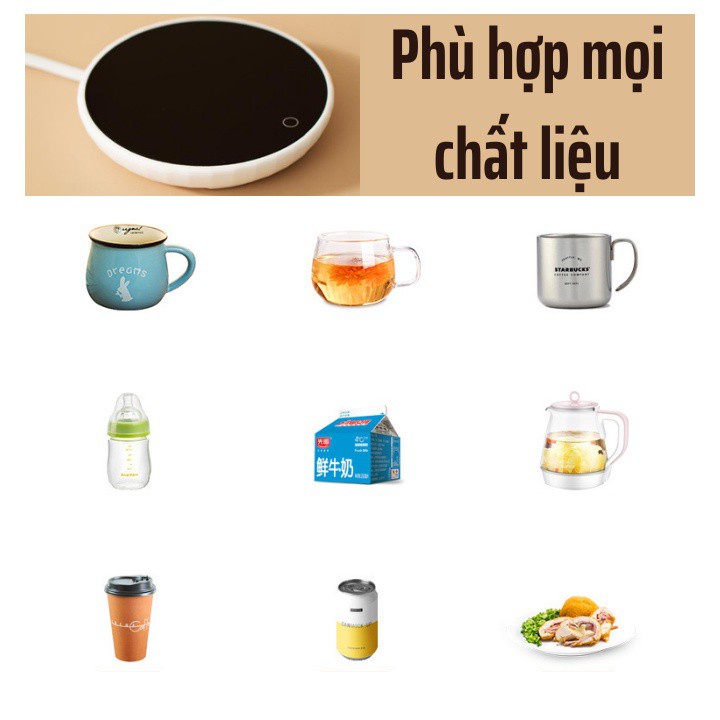 - Đặc biệt,đế giữ nhiệt này có thể tích hợp được với hầu hết các chất liệu khác,thích uống gì thì uống,mọi thứ nước uống đều có thể làm ấm nhờ đế cốc giữ nhiệt này.Từ bình sữa,ly sứ,ly inox,hộp sữa,lon nước,ấm trà,…