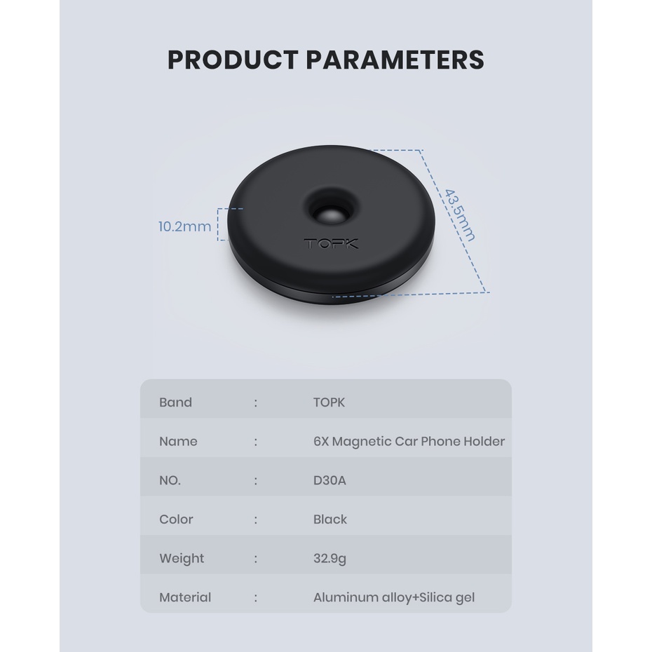 Đế hít điện thoại nam châm trên ô tô TOPK D30A - Thiết kế siêu mỏng, lực hít mạnh chống rung lắcTHỜI GIAN GIAO HÀNG SIÊU TỐC ĐỘ