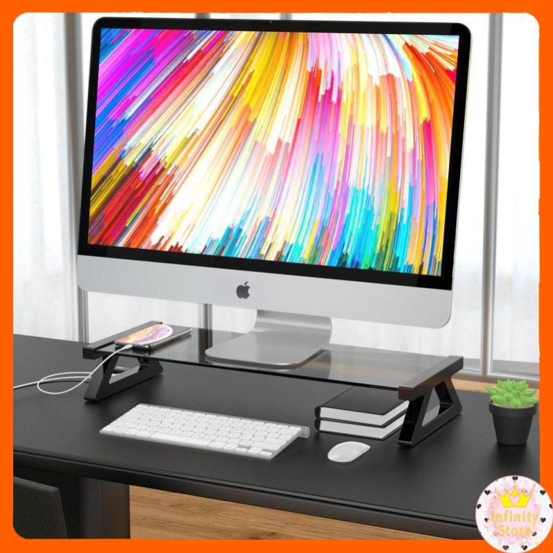 Giới thiệu [Mã 273ELHA100K0 hoàn 7% đơn 500K] ĐẾ KÊ MÀN HÌNH KÍNH KIÊM USB HUB ĐEN INFINY DECOR