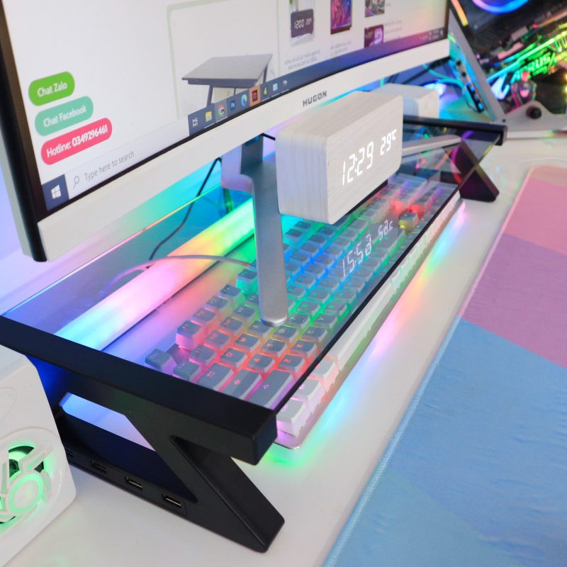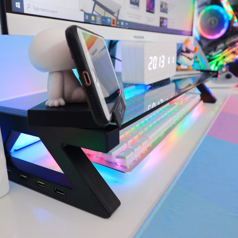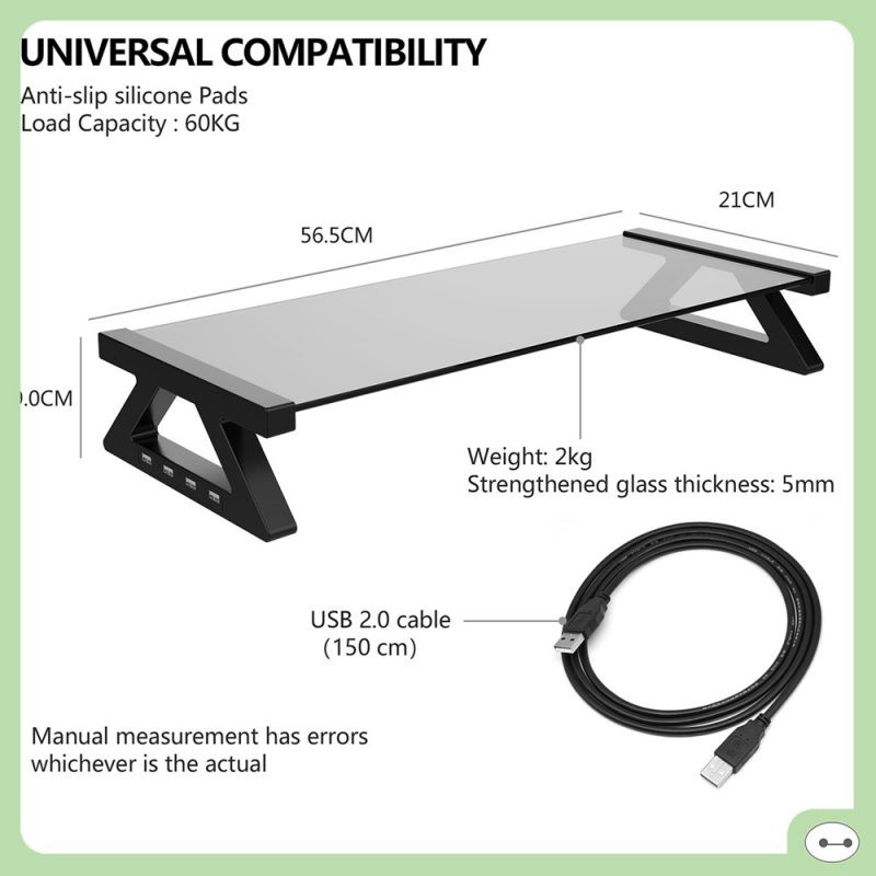 ĐẾ KÊ MÀN HÌNH KÍNH KIÊM USB HUB ĐEN