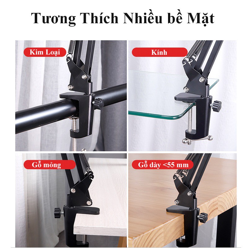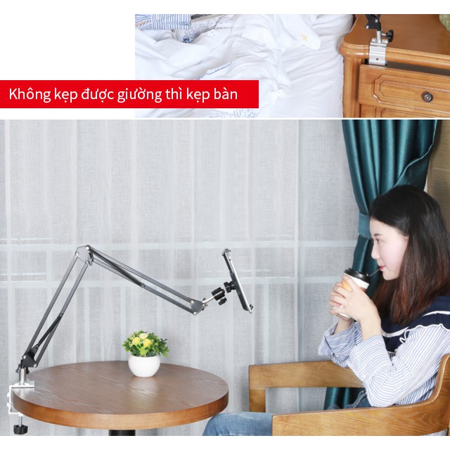 Phương thức sử dụng: kẹp đầu giường, mặt bàn, mọi chỗ có độ dày từ 5,5cm trở xuống.