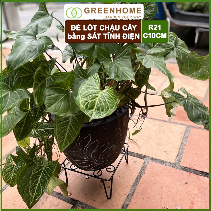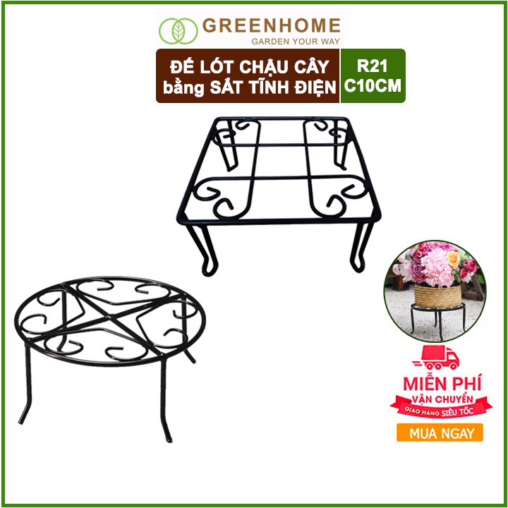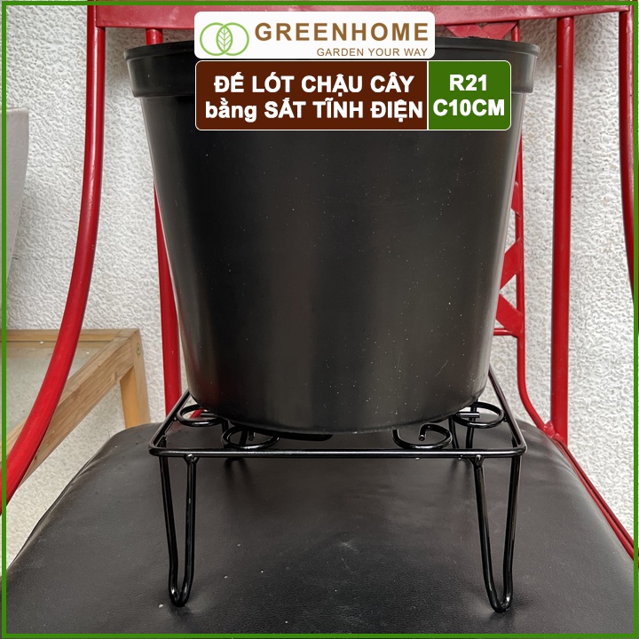 Nhà cửa & Đời sống > Làm vườn > Chậu cây || Đế lót chậu cây bằng sắt, R21xC10cm, hình vuông, sơn tĩnh điện, màu đen, uốn mỹ nghệ, bền, đẹp |GreenhomeCòn hàng