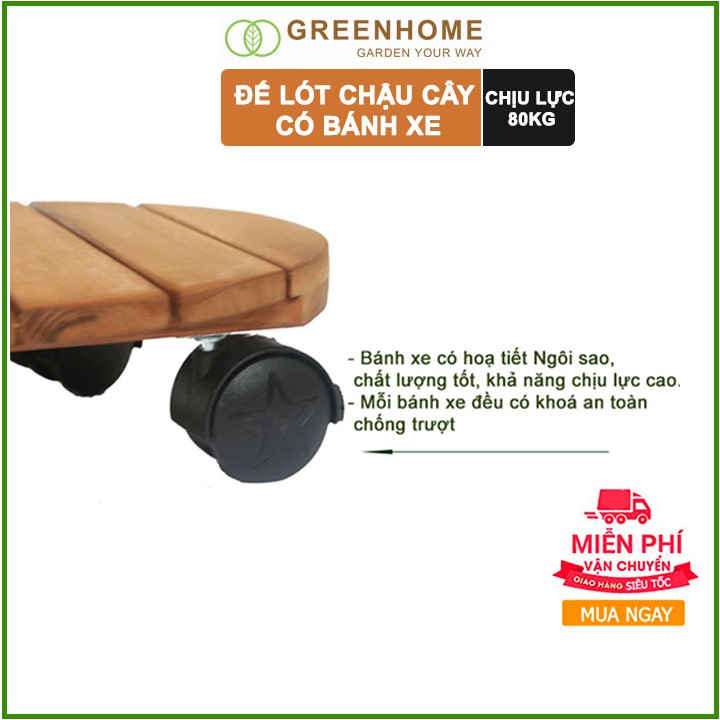Nhà cửa & Đời sống > Làm vườn > Chậu cây || Đế lót chậu cây có bánh xe, hình tròn, màu nâu, bằng gỗ, chịu lực 80kg, R30xC8cm |GreenhomeCòn hàng