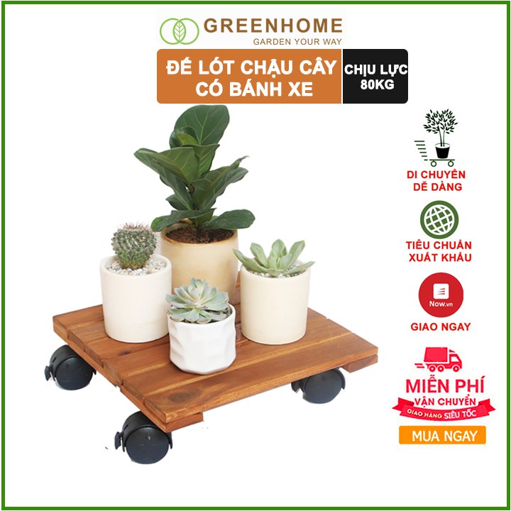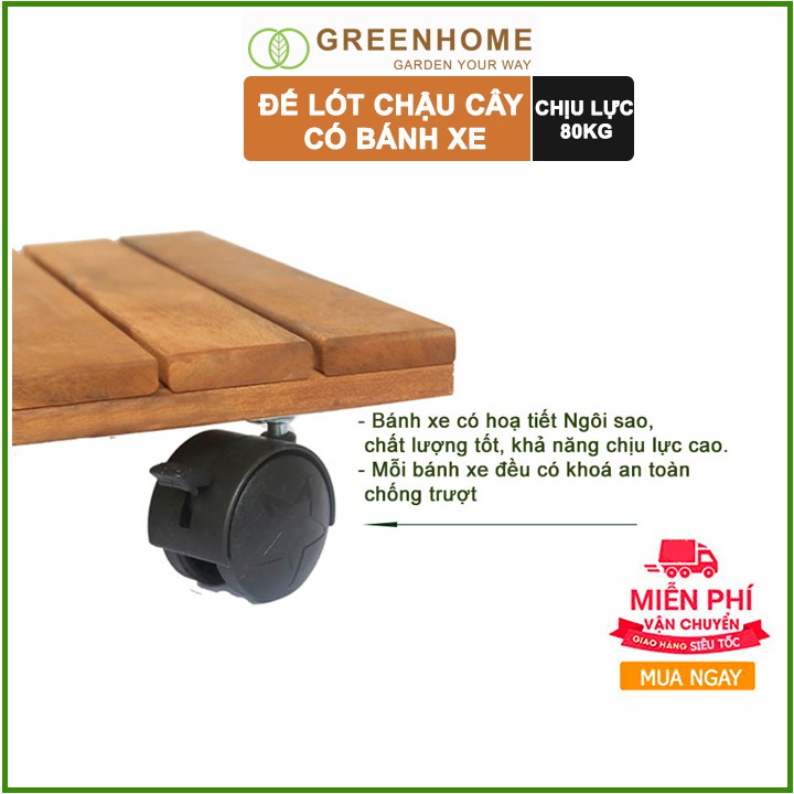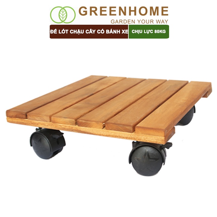 Nhà cửa & Đời sống > Làm vườn > Chậu cây || Đế lót chậu cây có bánh xe, hình vuông, màu nâu, bằng gỗ, chịu lực 80kg, R30xC8cm |GreenhomeCòn hàng