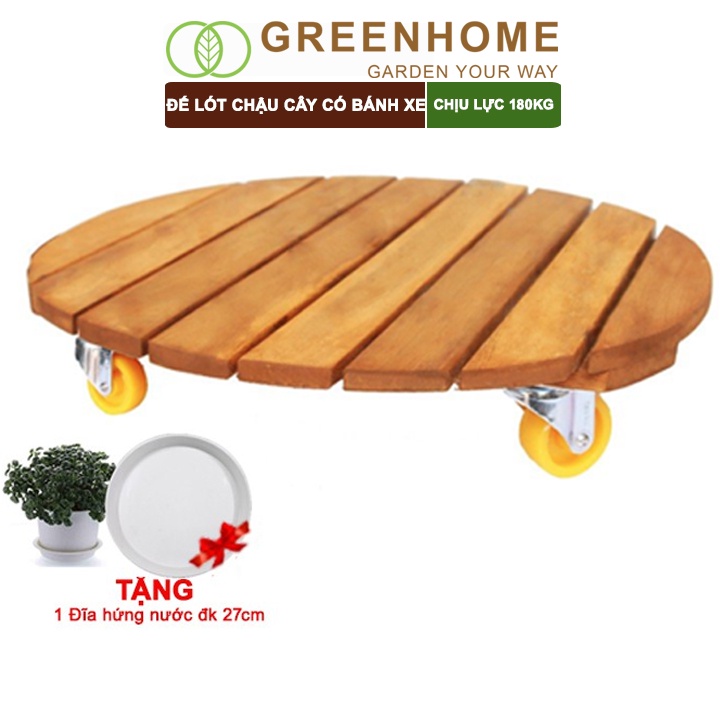 Nhà cửa & Đời sống > Làm vườn > Chậu cây || Đế lót chậu cây có bánh xe, hình tròn, màu nâu, bằng gỗ, chịu lực 180kg, R40xC9cm -Tặng 1 dĩa lót Tròn D27cm |GreenhomeCòn hàng