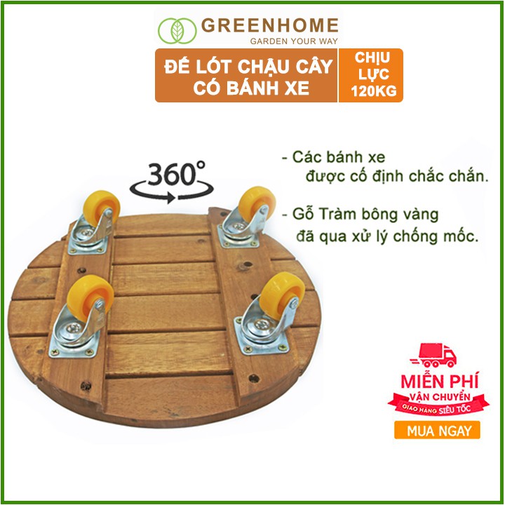 Nhà cửa & Đời sống > Làm vườn > Chậu cây || Đế lót chậu cây có bánh xe, hình vuông, màu nâu, bằng gỗ, chịu lực 120kg, R30xC8cm-Tặng 1 dĩa lót Vuông D25cm |GreenhomeCòn hàng
