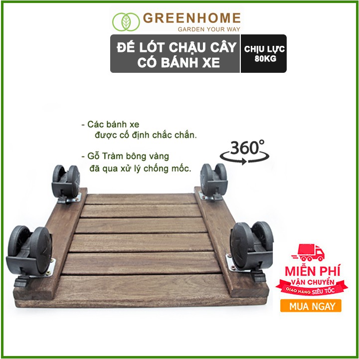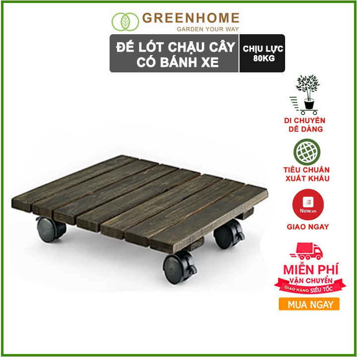Nhà cửa & Đời sống > Làm vườn > Chậu cây || Đế lót chậu cây có bánh xe, hình vuông, màu đen, bằng gỗ, chịu lực 80kg, R30xC8cm |GreenhomeCòn hàng