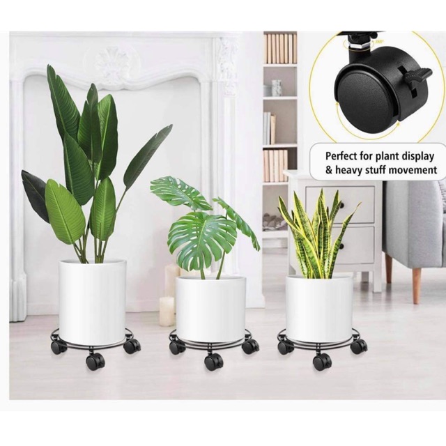 - Giá đỡ chậu trồng cây bằng sắt tròn này đủ lớn để giúp di chuyển xung quanh nhà bạn một cách dễ dàng.