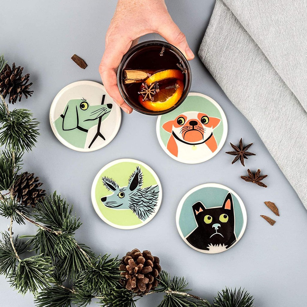 Đế lót cốc bằng gốm non có mặt sau ép gỗ sồi hút nước cực tốt, trang trí cho quán cafe, quầy bar, nhà hàng,phòng ăn 2023