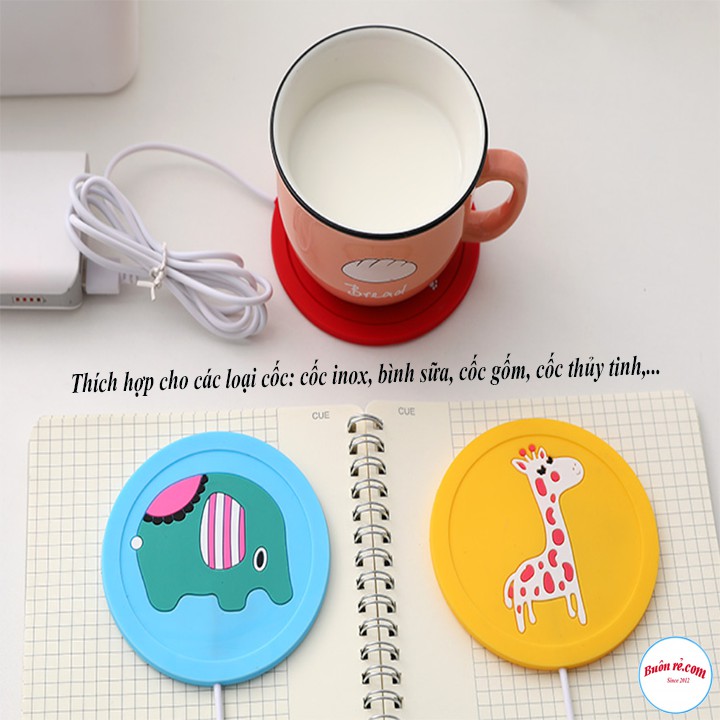 Giới thiệu Đế Lót Cốc Hâm Nóng Đồ Uống Silicon Cổng Sạc USB Họa Tiết Hoạt Hình Dễ Thương 00903