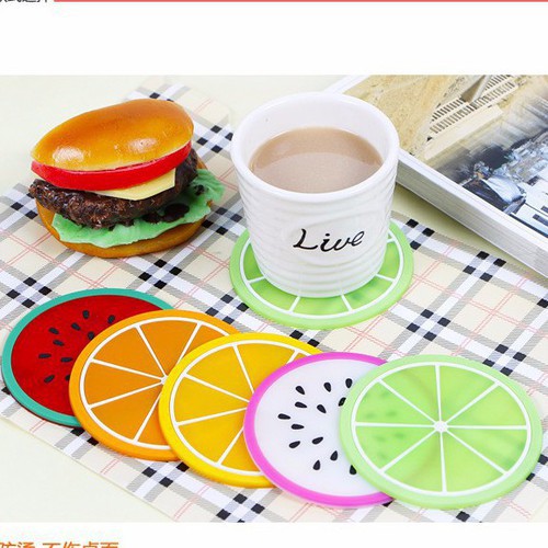 Đế lót cốc hình trái cây bằng silicon đáng yêu