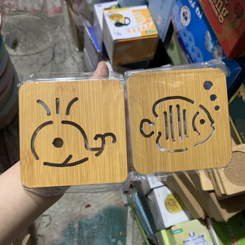 Đế Lót Cốc Ly Tròn Vuông Cách Nhiệt Chống Trượt - Miếng Lót Cốc Giá Rẻ - Lót Ly Bằng Gỗ-ảnh thật