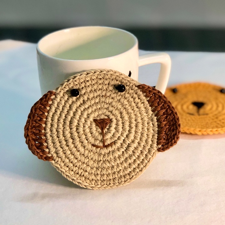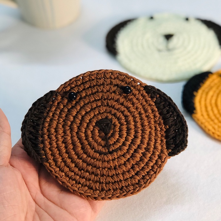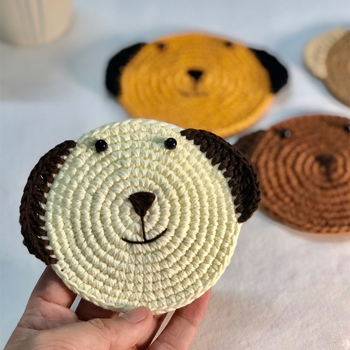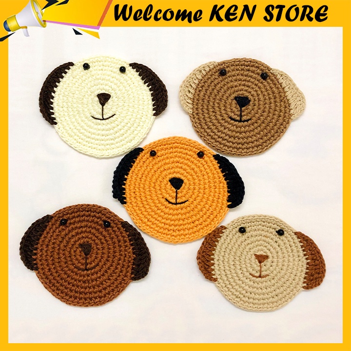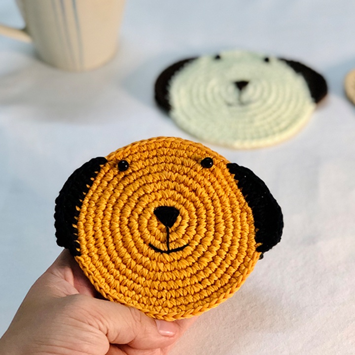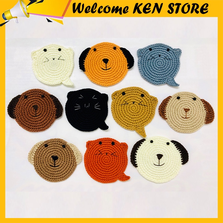 Đế lót cốc miếng lót ly thấm nước hình mặt mèo, mặt chó dễ thương handmade từ vải len