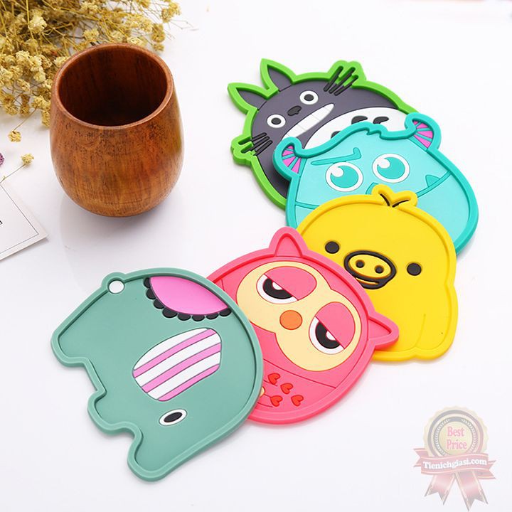 Đế lót cốc nhựa silicon chống trơn trượt hoạt hình dễ thương | Lót ly nóng cao su cao cấp hình thú cute