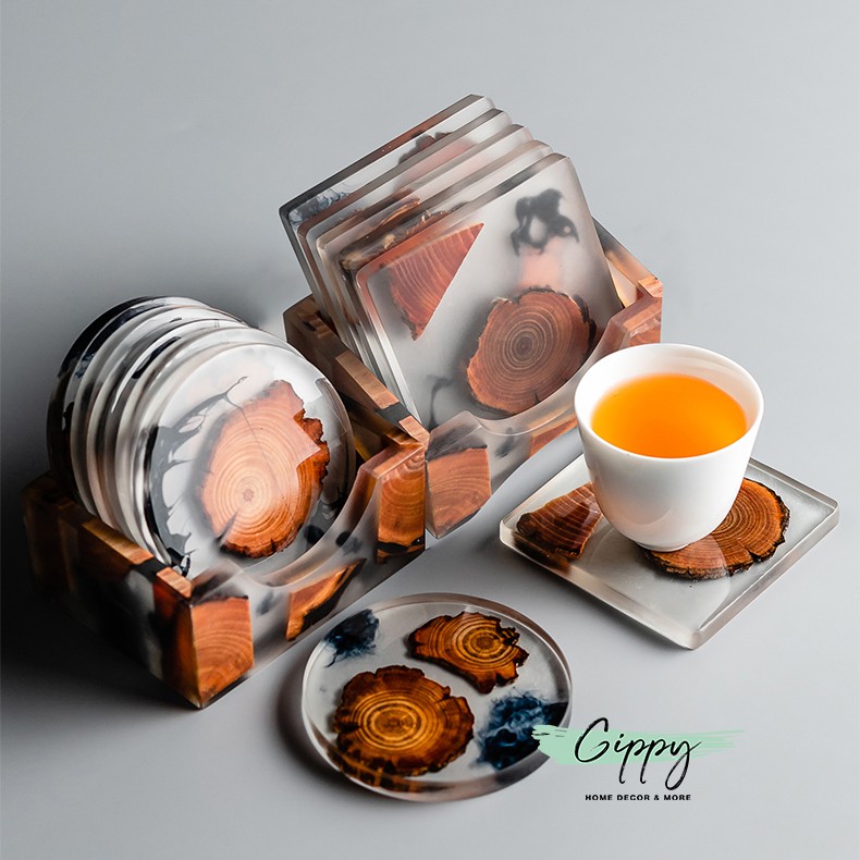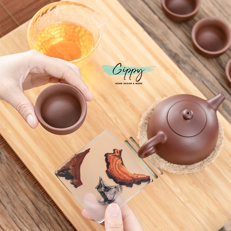 Đế lót cốc trà nhựa thông Coaster trong suốt, chịu Nhiệt Placemat - phụ kiện trang trí - Gippy Decor