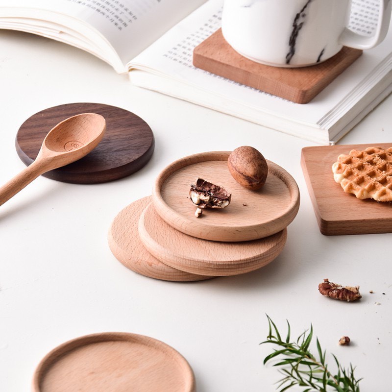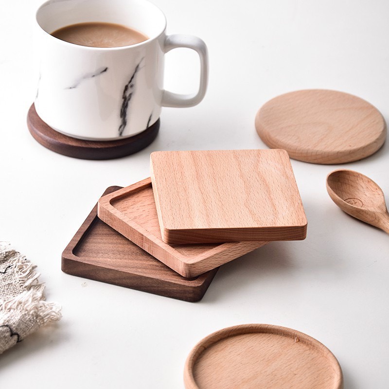 Nhà cửa & Đời sống > Bộ đồ bàn ăn > Khay, tấm lót bàn ăn || Đế lót ly bằng gỗ thiết kế hình tròn, vuông dùng cho quán cà phê lót ly cao cấp MinhomeCòn hàng