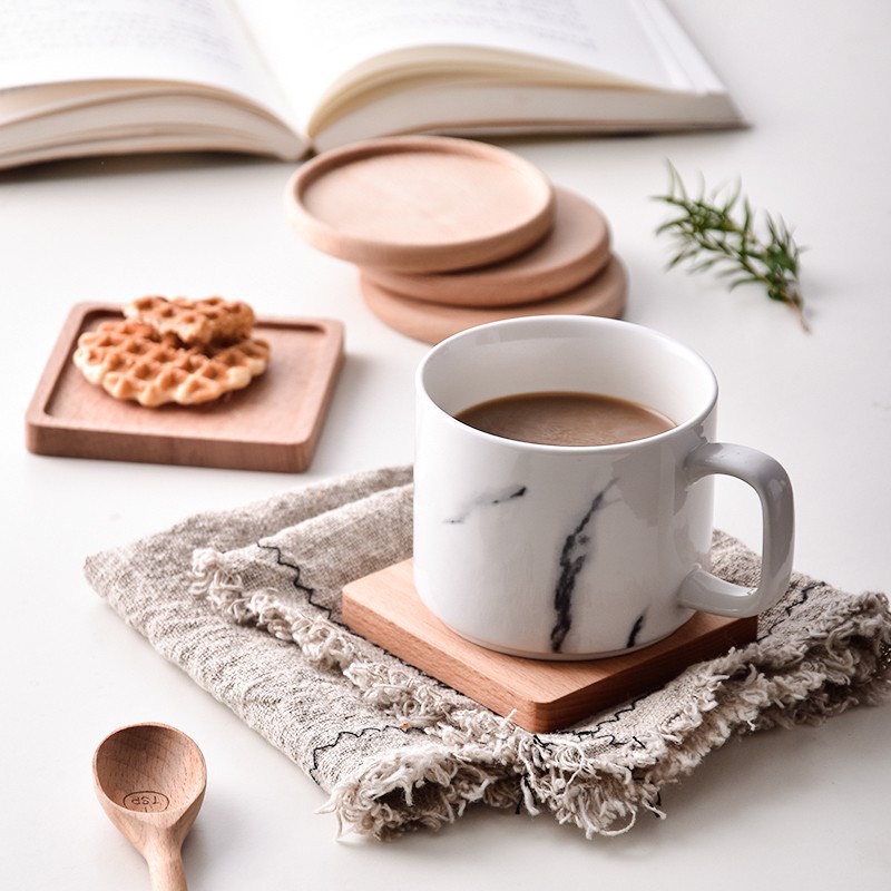 Đế lót ly bằng gỗ thiết kế hình tròn, vuông dùng cho quán cà phê lót ly cao cấp Minhome