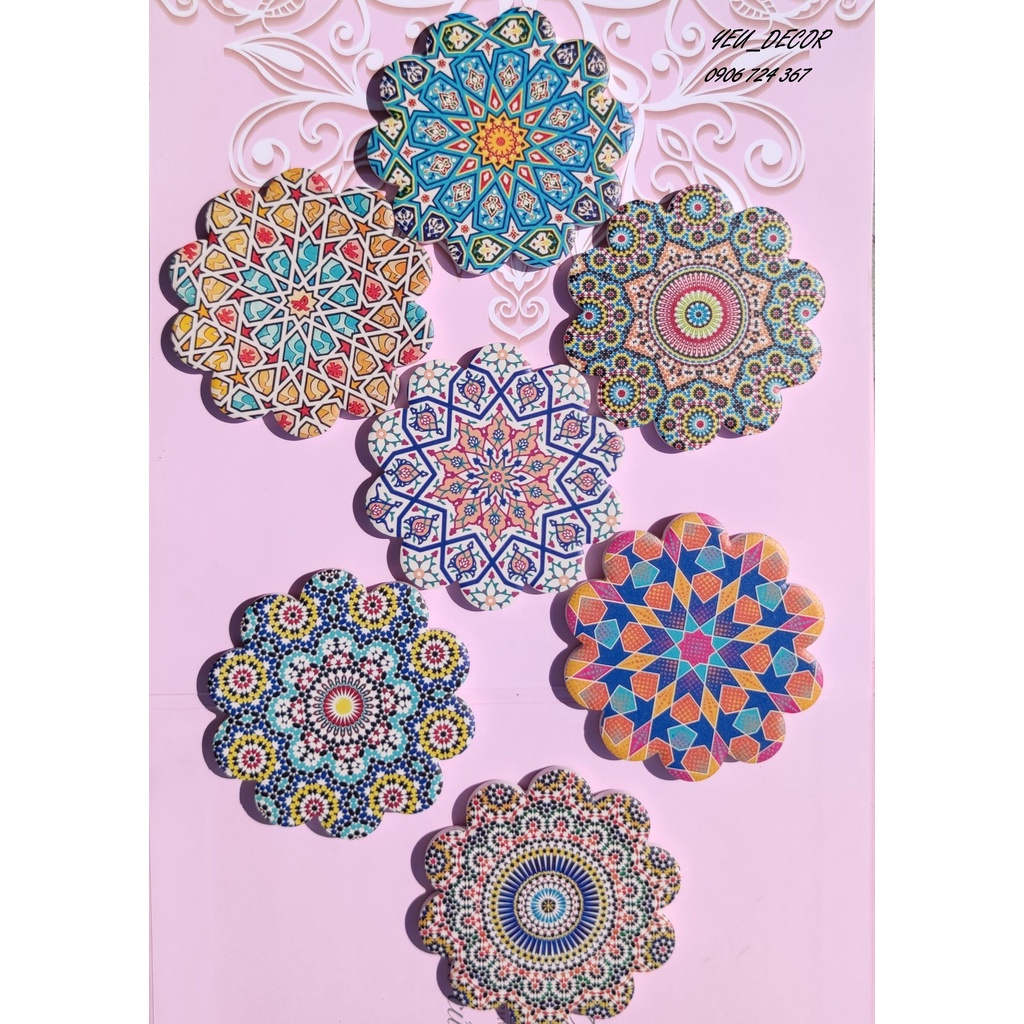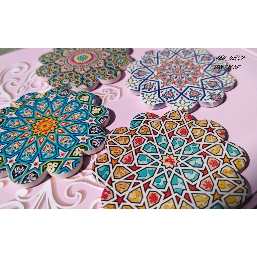 Đế Lót Ly Bằng Gốm Thấm Nước Hình Bông Hoa Họa Tiết Mandala Độc Đáo
