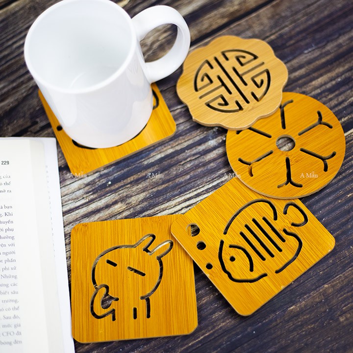 ĐẾ LÓT LY, CHÉN BẰNG GỖ CÁCH NHIỆT HỌA TIẾT ĐẸP