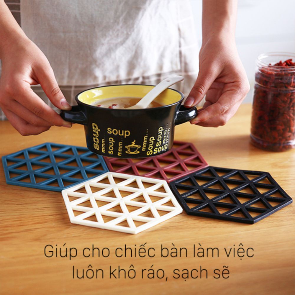 Đế lót ly cốc - Miếng lót nồi hình lục giác bằng nhựa dẻo có tính đàn hồi, chịu nhiệt tốt (màu giao ngẫu nhiên)