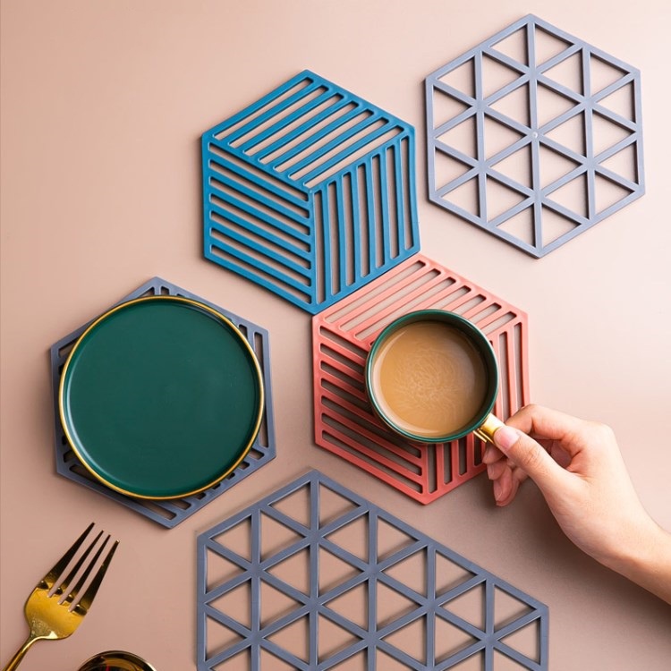 Đế lót ly cốc - Miếng lót nồi hình lục giác bằng nhựa đàn hồi chịu nhiệt loại tốt