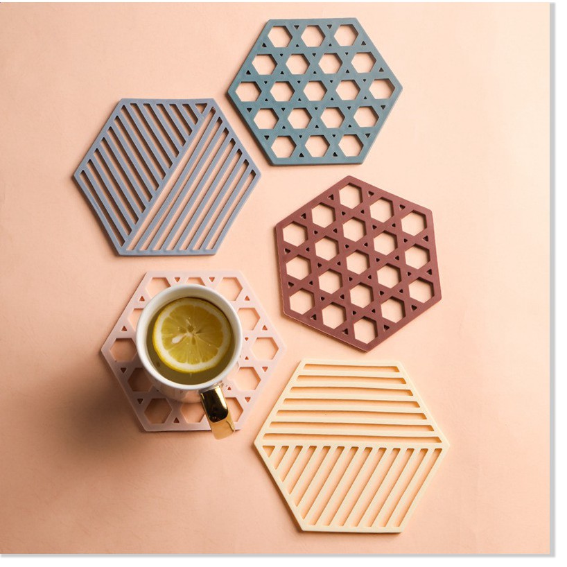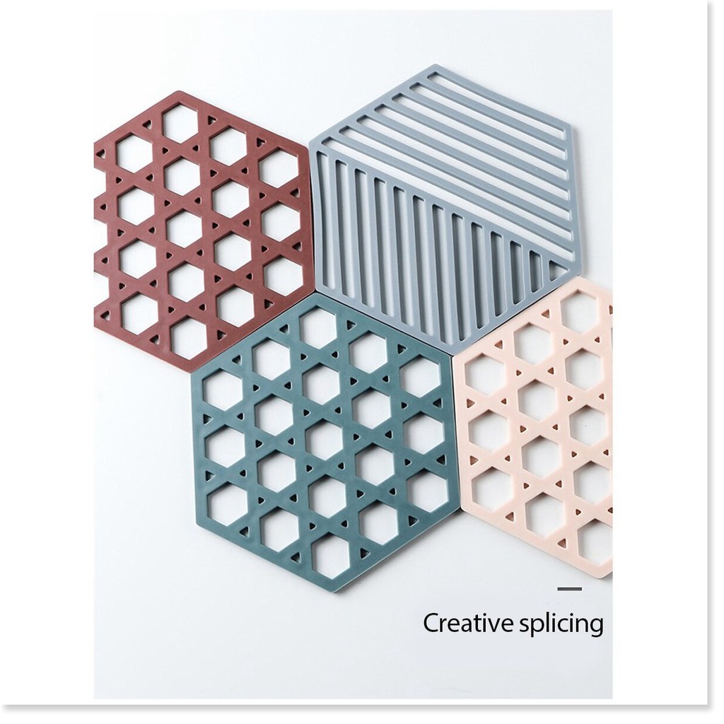 🌈 LOẠI HÌNH LỤC GIÁC - Miếng lót nồi, đế lót nồi bát đĩa cách nhiệt chất liệu silicon họa tiết hình học