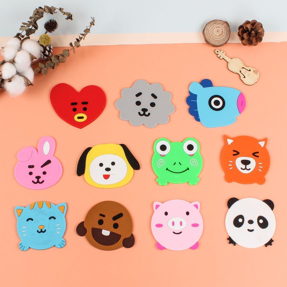 Đế lót ly cốc silicon chống trượt cách nhiệt BT21 doraemon hình thú dễ thương xinh xắn Kinoshop
