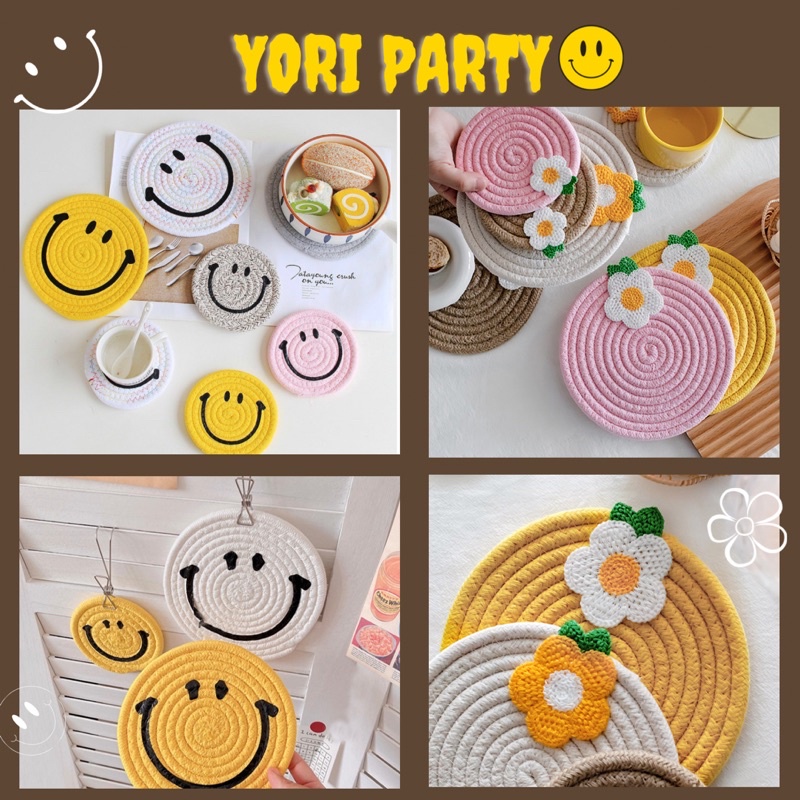 Giới thiệu Đế Lót Ly Để Bàn Hình Mặt Cười Lót Ly Hình Bông Cúc Trang Trí Nhà Cửa - Yori Party
