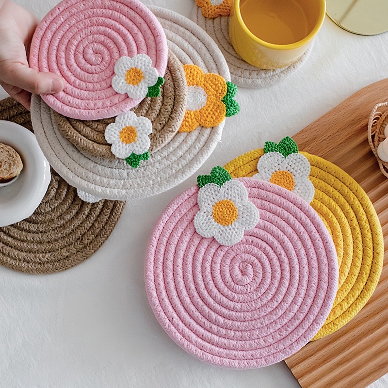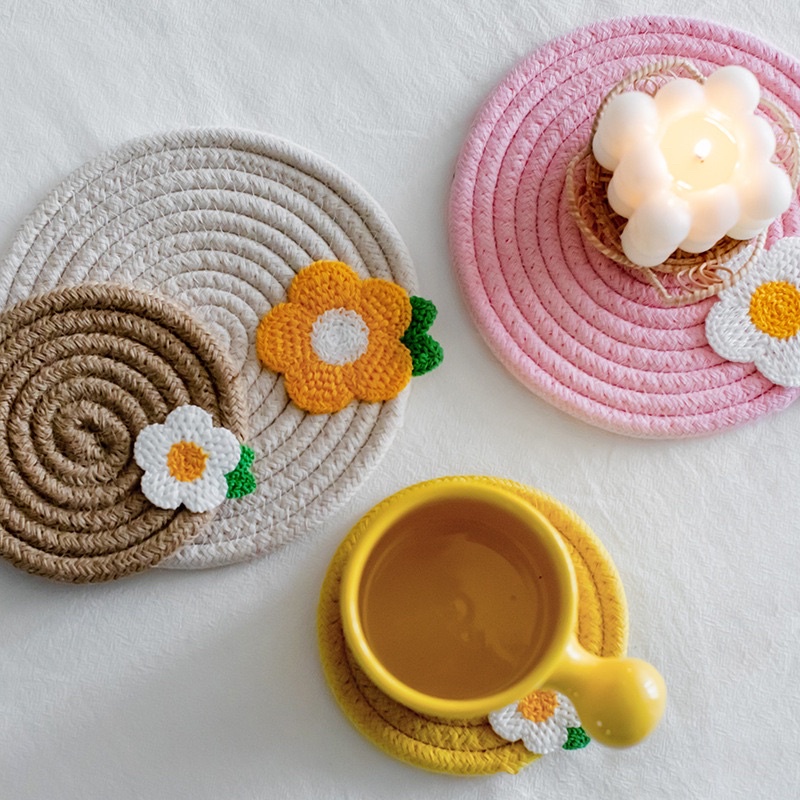 Nhà cửa & Đời sống > Bộ đồ bàn ăn > Khay, tấm lót bàn ăn || Đế Lót Ly Để Bàn Hình Mặt Cười Lót Ly Hình Bông Cúc Trang Trí Nhà Cửa - Yori PartyCòn hàng