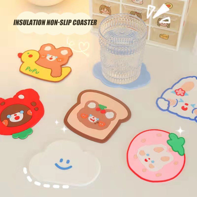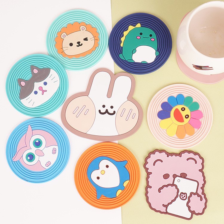 Tấm lót bàn lót bằng silicon, rất thiết thực, lấy một cốc nước sôi hoặc đồ uống nóng bằng tấm lót này sẽ không bị nóng Các mẫu hoạt hình rất dễ thương và thiết thực