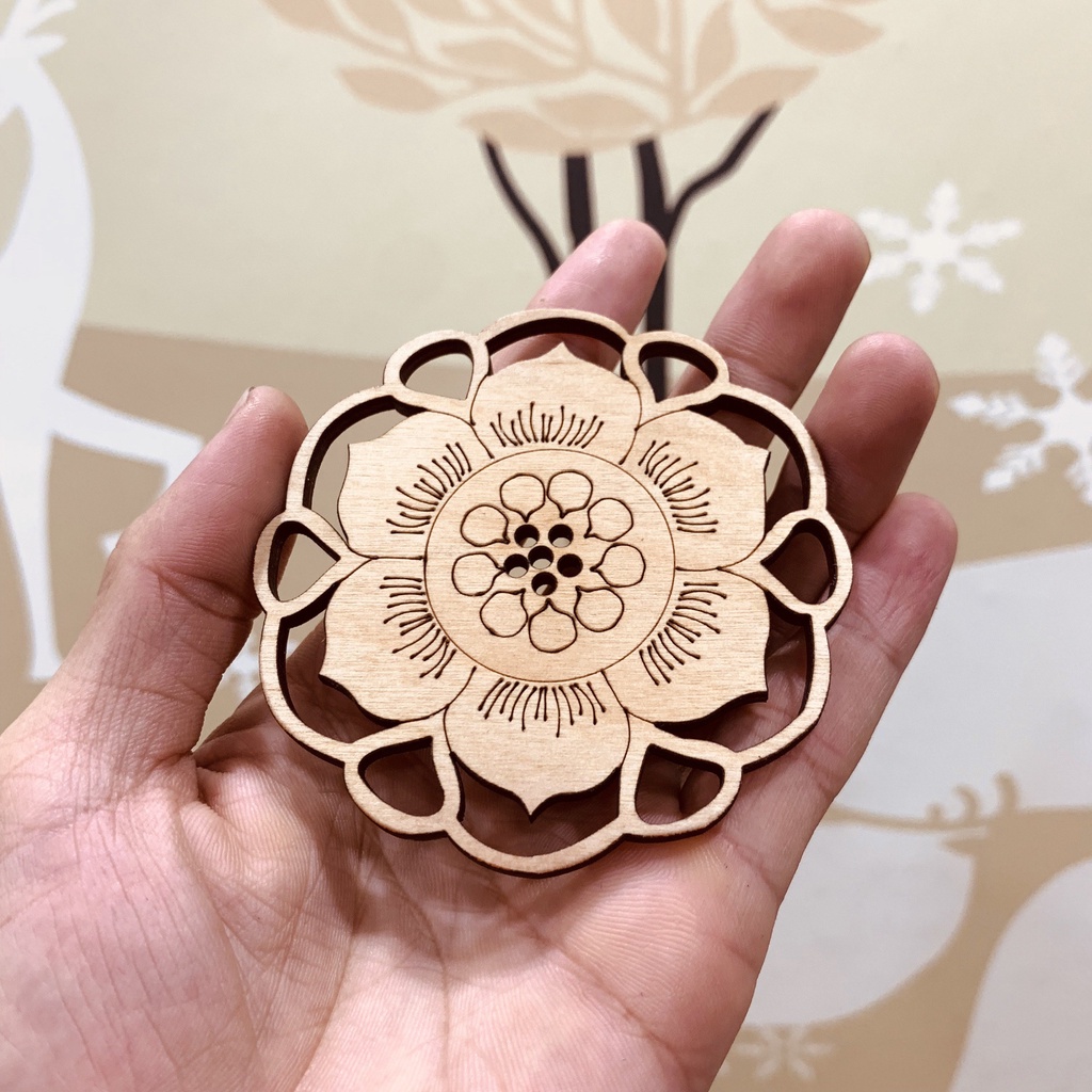🍓🍓SẢN PHẨM LÓT CỐC ĐƯỢC THIẾT KẾ THEO PHONG CÁCH HOA SEN VIỆT NAM CỔ ĐIỂN CẮT BẰNG CÔNG NGHỆ CNC SẮC NÉT TRÊN CHẤT LIỆU GỖ BẠCH DƯƠNG, ĐƯỜNG KÍNH 80MM DÀY 4MM,DÙNG CHO VIỆC TRANG TRÍ TRƯNG BÀY TRONG QUÁN TRÀ, CAFE VÀ TRANG TRÍ NHÀ CỬA THEO PHONG CÁCH PHƯƠNG ĐÔNG ĐƯƠNG ĐẠILót cốc hay còn gọi là coasters là sản phẩm trang trí phổ biến trong gia đình với chức năng ngăn nước hoặc đồ uống thấm xuống bàn làm việc nhiệm vụ đơn giản nay đã được cải tiến thêm chức năng trang trí decor thể hiện cá tính của chủ nhân ngôi nhà theo phong cách hoa sen phương đông đương đại