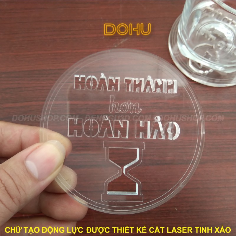 Mến chào bạn!Cám ơn bạn đã đến với sản phẩm Đế Lót Ly Tạo Động Lực Bằng Mica Trong Suốt “Hoàn Thành Hơn Hoàn Hảo” Độc Đáo có một không hai của DoHu Shop!