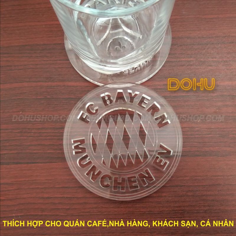 Giới thiệu Đế Lót Ly Trà, Cafe Trong Suốt Bằng Nhựa Mica Logo Bayern Munich - DOHU
