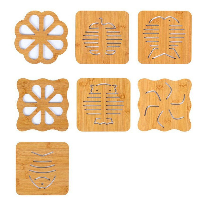 Với kích thước vuông, gọn, được khắc các họa tiết ngộ nghĩnh đẹp mắt, đế lót nồi bằng gỗ cũng là 1 vật dụng trang trí giúp cho bàn ăn của gia đình bạn thêm sinh động và lạ mắt.