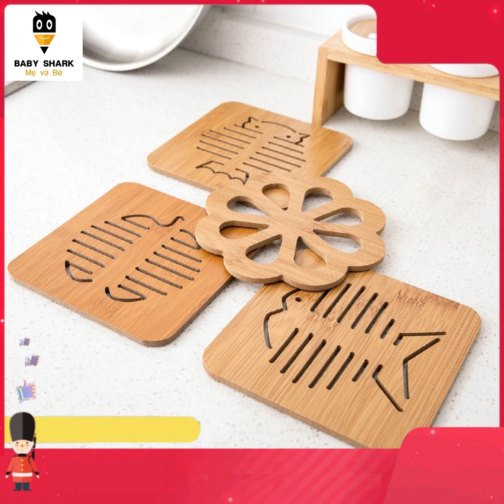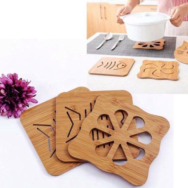 1. Sản phẩm dùng để lót xoong, nồi, chảo, bát đĩa, cốc chén … được làm bằng gỗ giúp cách nhiệt giữa xoong, nồi và mặt bàn hay tủ đựng thức ăn hiệu quả.