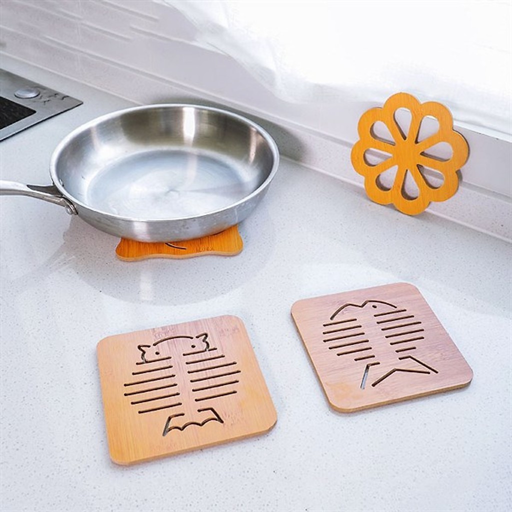 Nhà cửa & Đời sống > Bộ đồ bàn ăn > Khay, tấm lót bàn ăn || Đế lót nồi, cốc Nhật Bản bằng gỗ chịu nhiệt, trạm khắc những hình thú đáng yêuCòn hàng