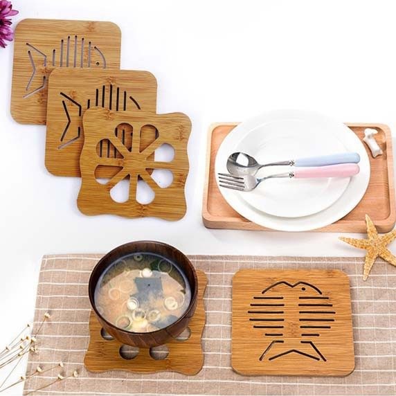 Đế lót nồi vốn là vật dụng không thể thiếu của các chị em trong gian bếp. Đế lót nồi bằng gỗ tiện dụng bền chắc cho Thời gian sử dụng lâu dài. Bạn có thể dùng rế lót nồi cơm, canh, kho… để không bị bỏng tay khi bưng nồi từ bếp đến bàn ăn.Với kích thước vuông, gọn, được khắc các họa tiết ngộ nghĩnh đẹp mắt, đế lót nồi bằng gỗ cũng là 1 vật dụng trang trí giúp cho bàn ăn của gia đình bạn thêm sinh động và lạ mắt.