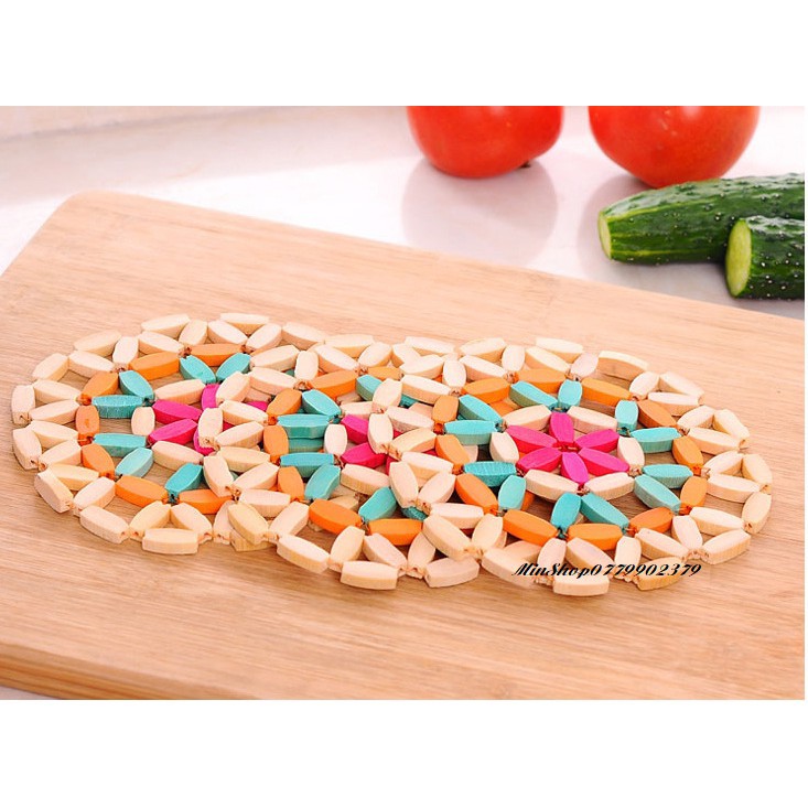 Nhà cửa & Đời sống > Bộ đồ bàn ăn > Khay, tấm lót bàn ăn || Đế lót nồi nhỏ , lót ấm trà bằng gỗ màu sắc tươi sángCòn hàng