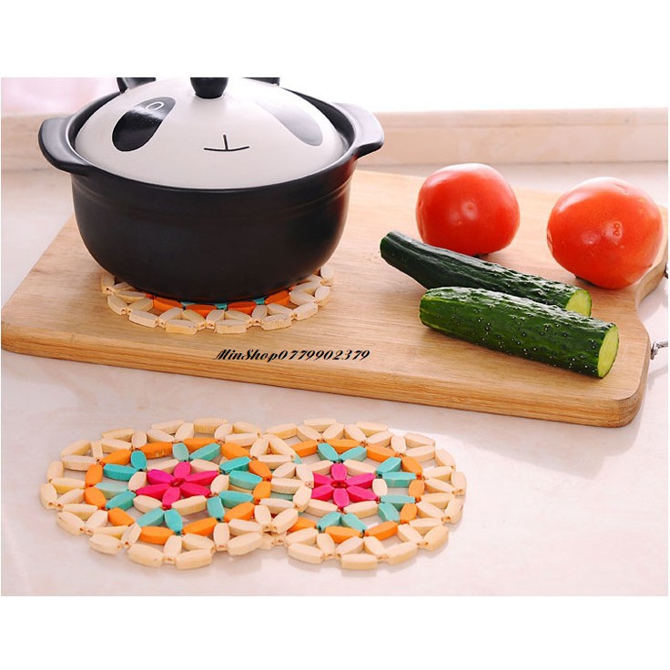 Giới thiệu Đế lót nồi nhỏ , lót ấm trà bằng gỗ màu sắc tươi sáng