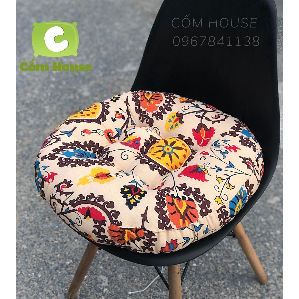Cốm House - Tổng Kho Đệm Ngồi Bệt, Gối Tựa Lưng Cao Cấp- Tên Sản Phẩm: Đệm Ngồi Bệt, Nệm Lót Ghế Vải Linen Hàn Quốc, Nệm Ngồi Kiểu Nhật Họa Tiết Thổ Cẩm Vintage Cao Cấp 45Cm