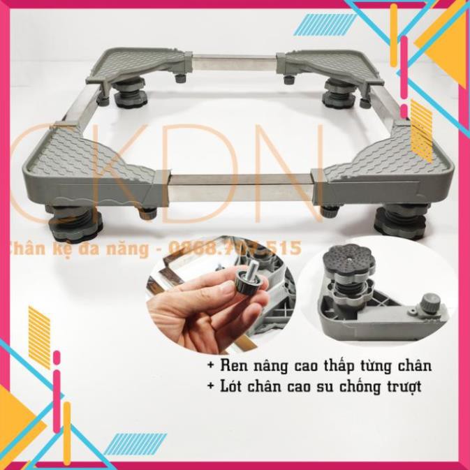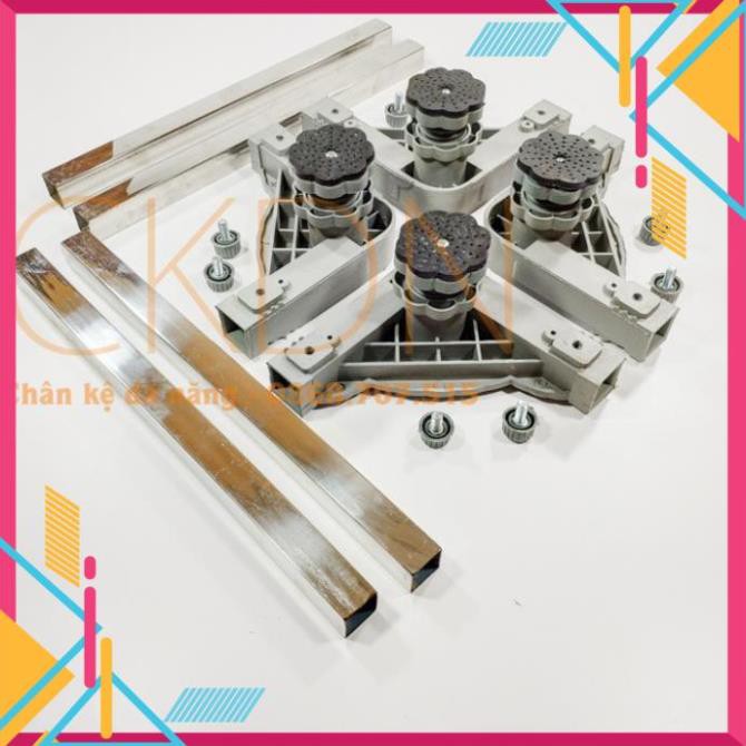 Đế máy giặt-Kệ kê máy giặt-Chân để máy giặt tủ lạnh chống rung, trụ ren điều chỉnh cao thấp phiên bản 2021 là sản phẩm cao cấp chuyên dụng cho các mặt nền không bằng phẳng, với khả năng tăng giảm chiều cao từng trụ bằng chân ren.