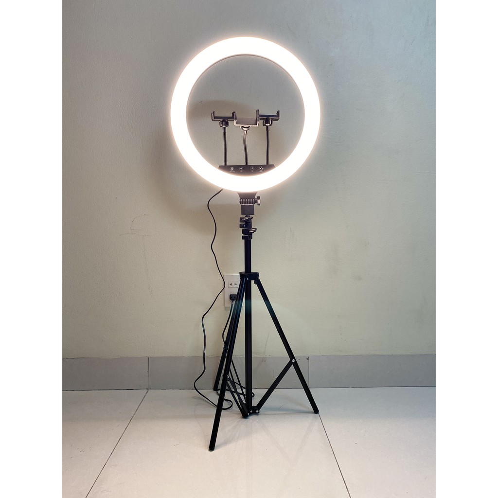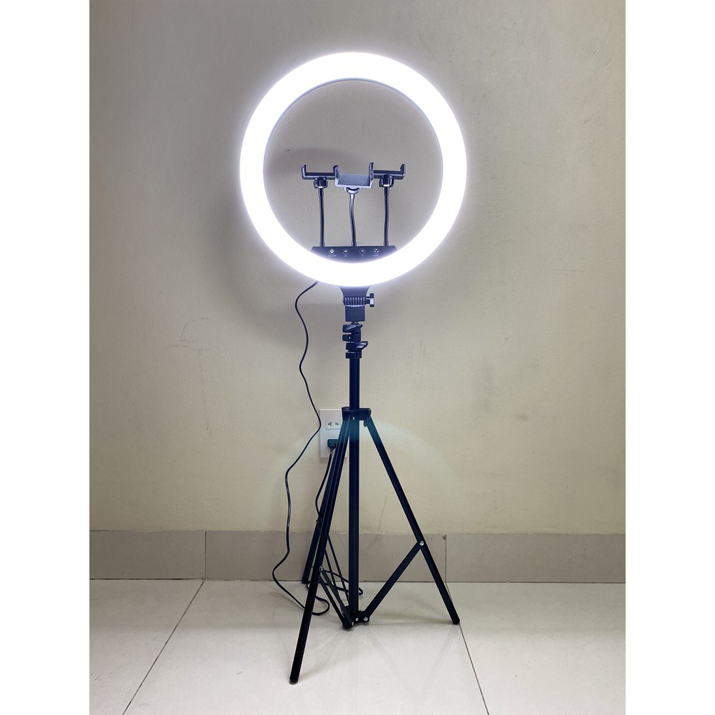 Bộ sản phẩm bao gồm: 1 đèn live stream 45cm + 1 chân đế + 3 kẹp điện thoại.