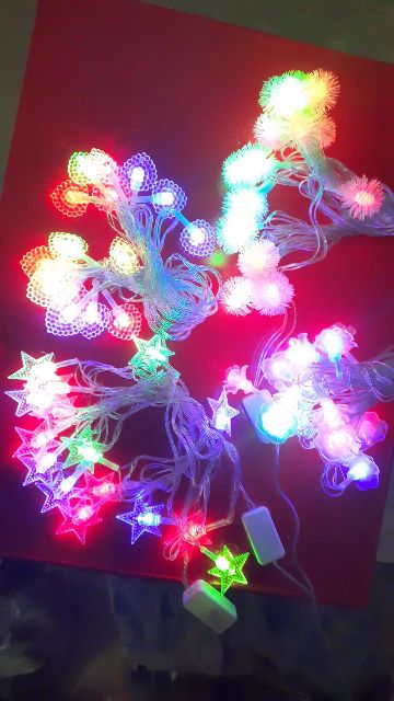 ❶ Dây đèn nháy hình hoa,sao,quả dâu,cầu nhím sử dụng nhiều cho trang trí noel lễ tết