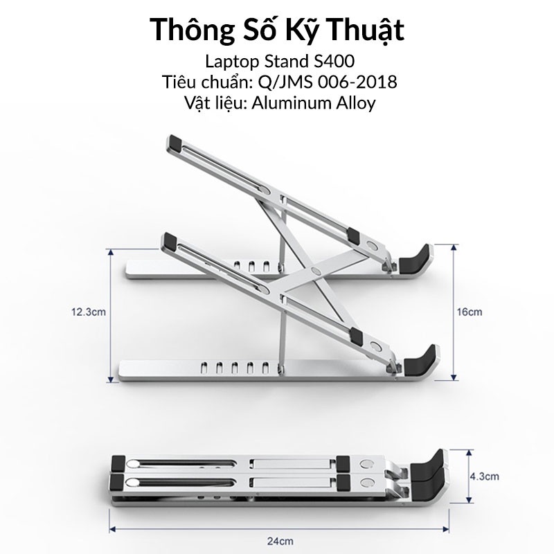 💻 Giá đỡ máy tính xách tay Wiwu s400 có khả năng tương thích với tất cả các máy tính xách tay từ 10-16 inch,